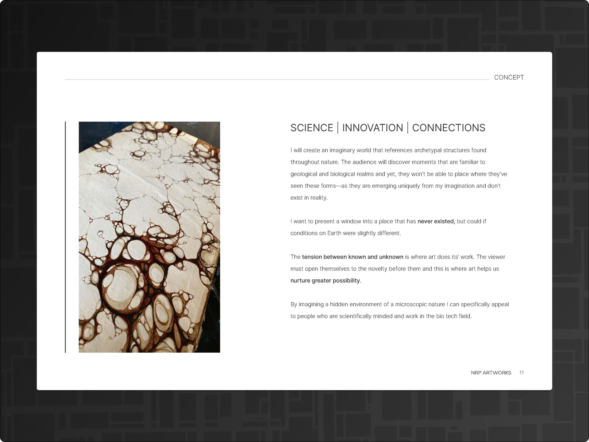 The result was a cohesive brand and digital system that repositioned NRP Artworks as a credible, studio-scale creative operation. The new tools supported clearer communication, stronger proposals, and larger opportunities—including a $60k mural commission awarded through the redesigned pitch deck.